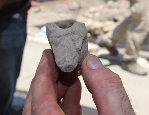 By Cassidy Ross…Whilst digging a survey pit Michael came across some red dirt. Low and behold there was something suspicious